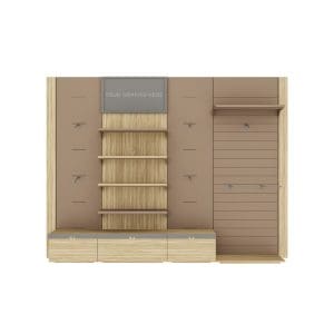 M30;moda;marroquinería;expositores de pared;mural;no autoportante;con cremallera;con ranuras;de lamas;con iluminación;madera;
